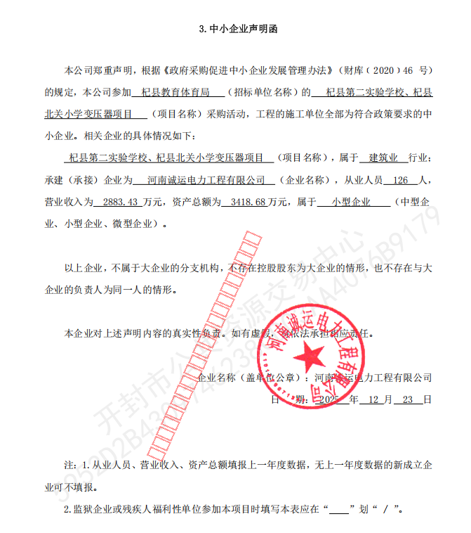 杞县第二实验学校、杞县北关小学变压器项目第二标段结果公告