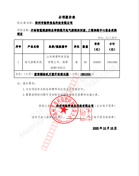 1、投标内容:开封智慧健康职业学院现代电气控制实训室设备采购。