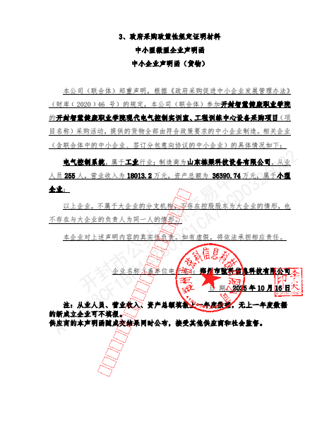 1、项目名称:开封智慧健康职业学院现代电气控制实训室、工程训练中心设备采购项目