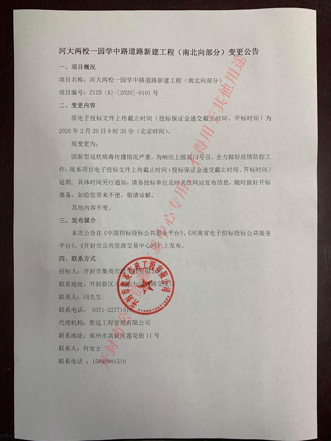 河大两校一园学中路道路新建工程(南北向部分)变更公告