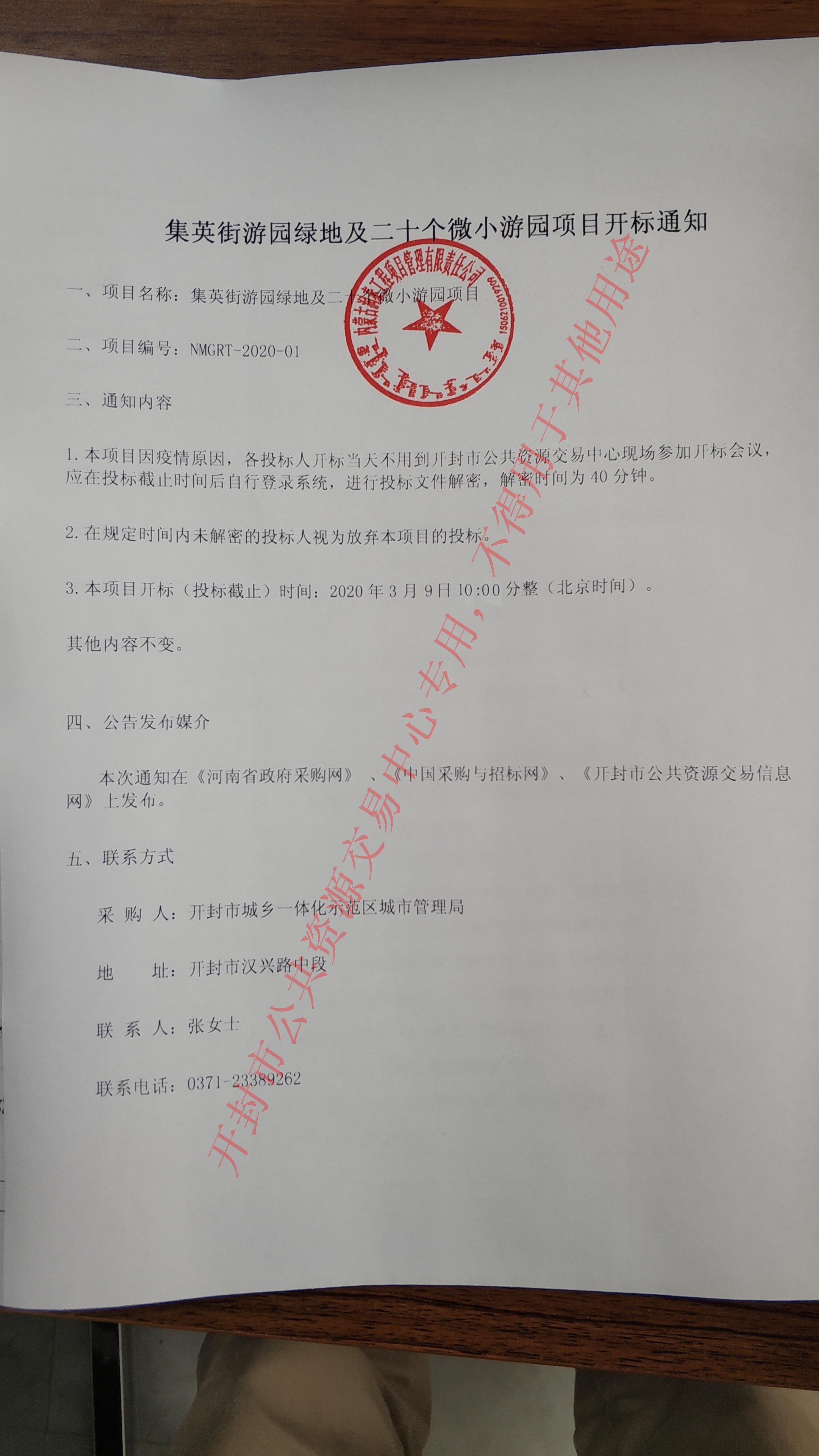 1.本项目因疫情原因,各投标人开标当天不用到开封市公共资源交易中心现场参加开标会议,应在投标截止时间后自行登录系统,进行投标文件解密,解密时间为40分钟。