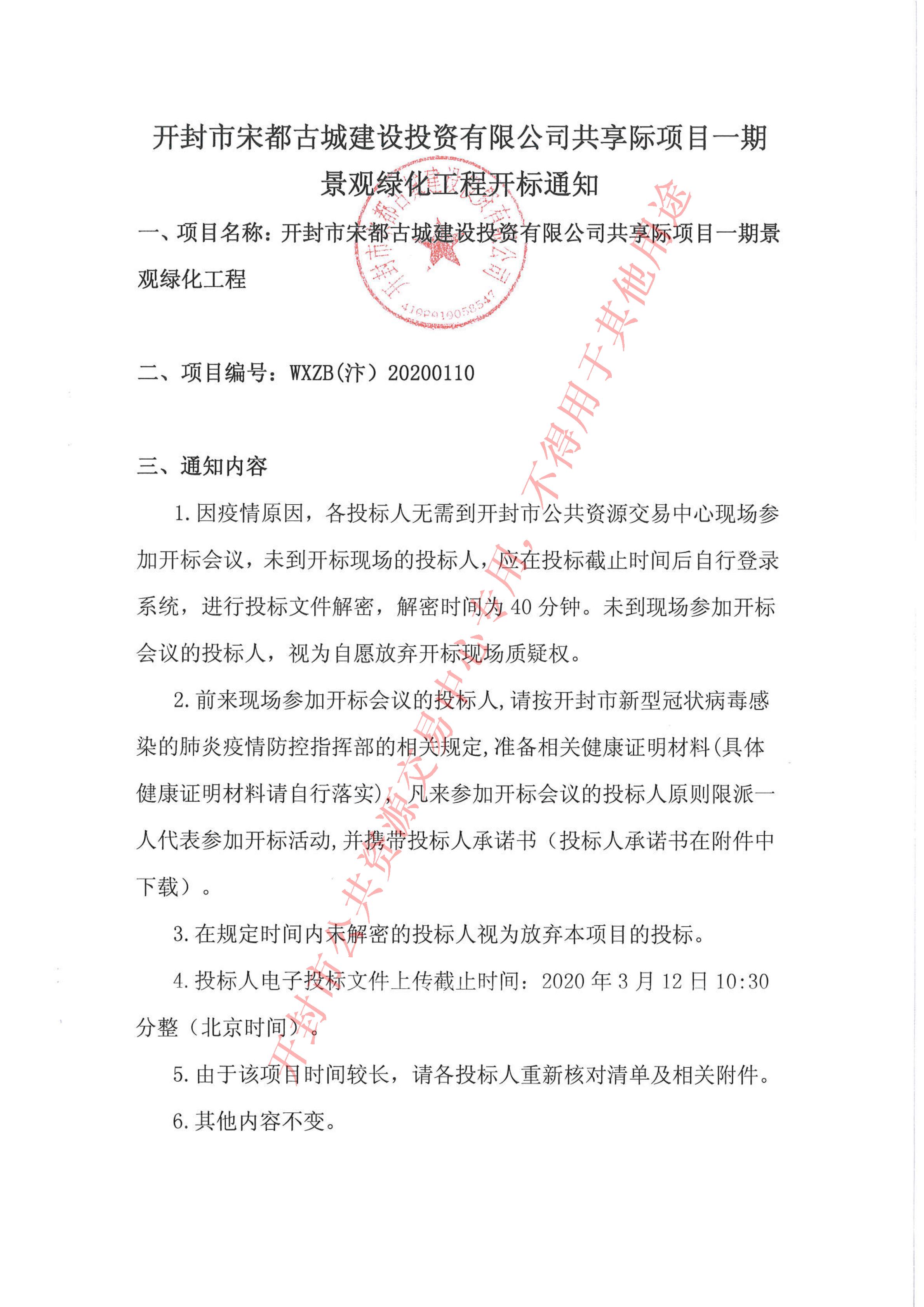 一、项目名称:开封市宋都古城建设投资有限公司共享际项目一期景观绿化工程