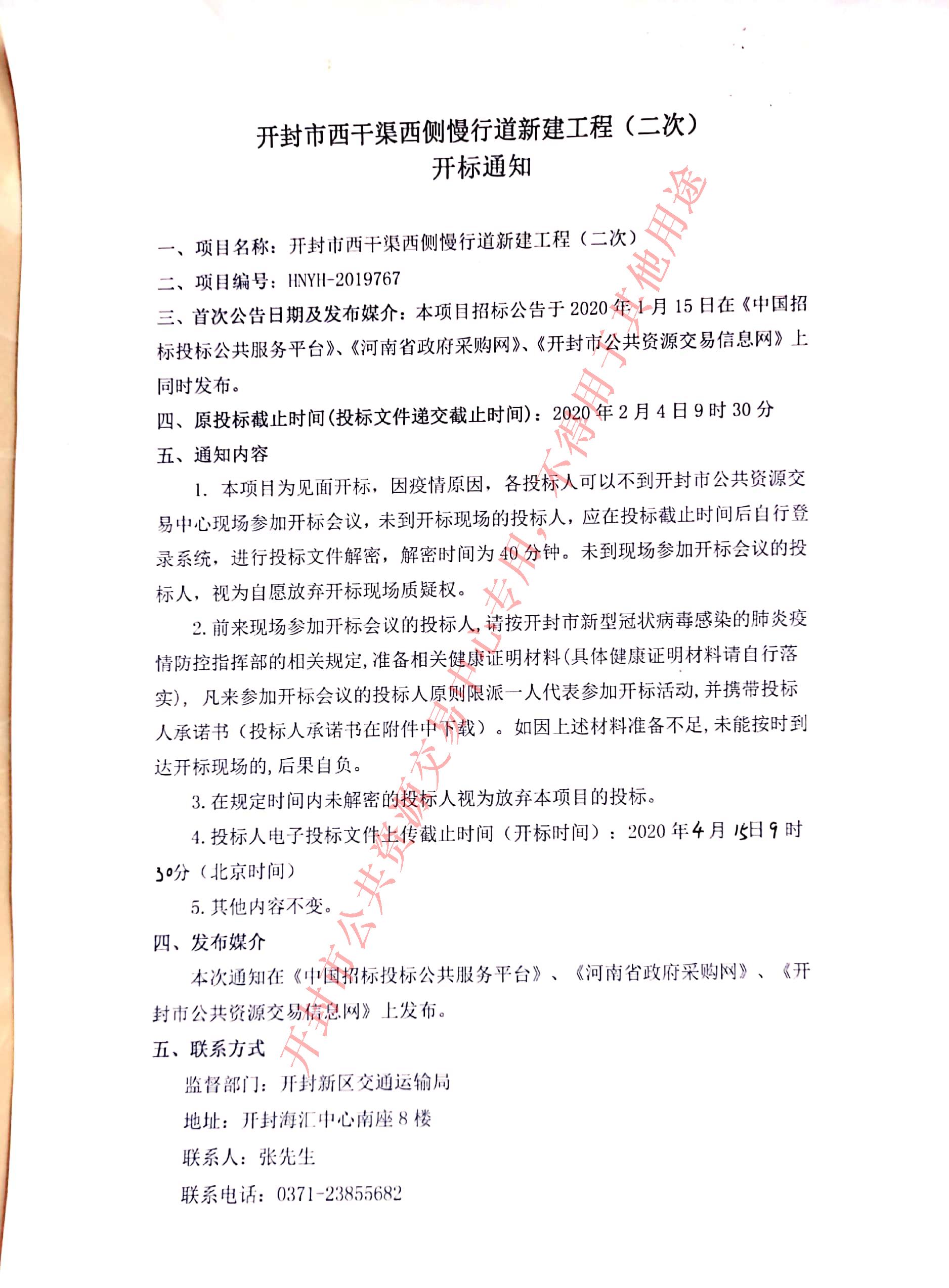 三、首次公告日期及发布媒介:本项目招标公告于2020年1月15日在《中国招标投标公共服务平台》、《河南省政府采购网》、《开封市公共资源交易信息网》上同时发布。