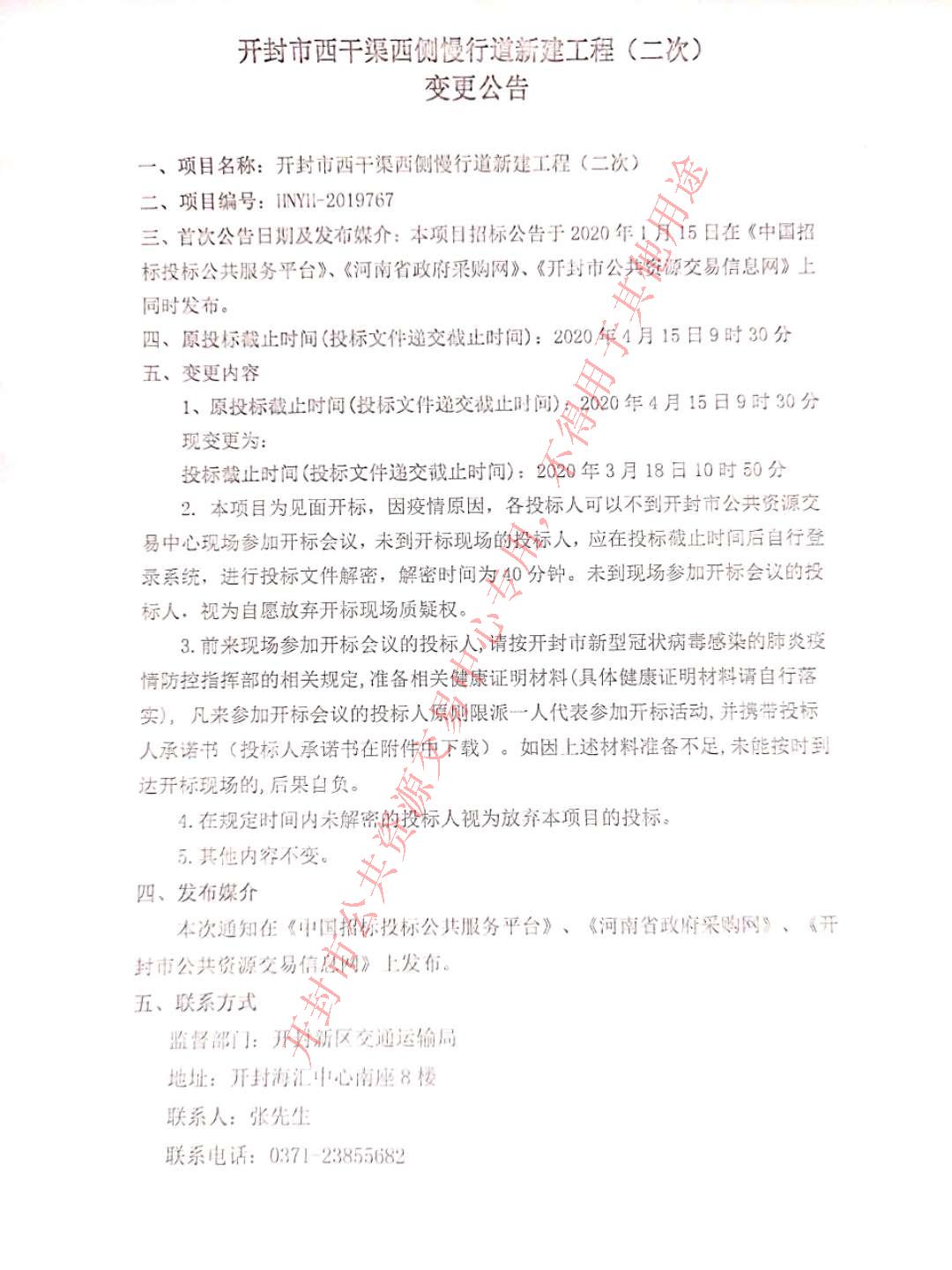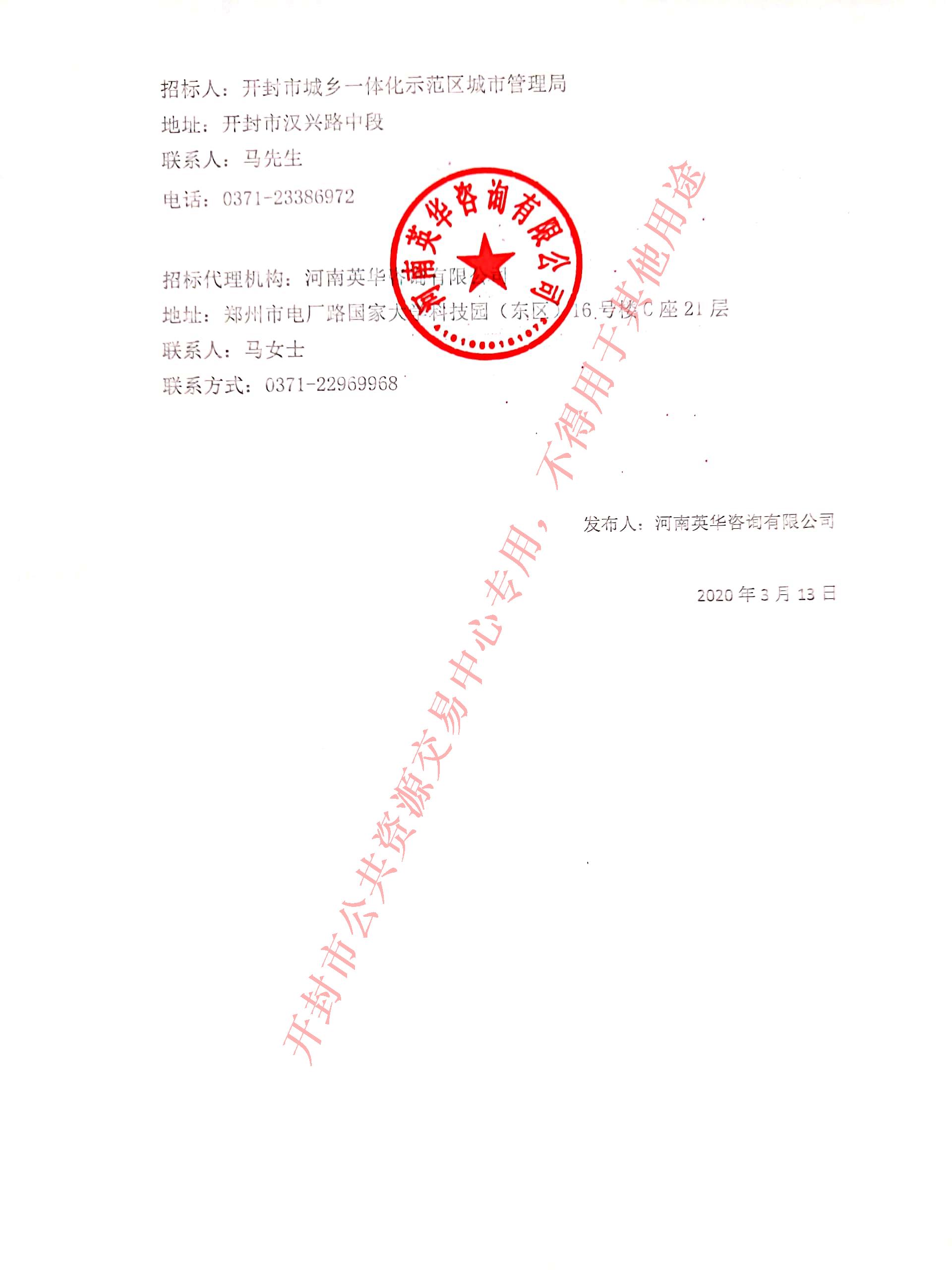 三、首次公告日期及发布媒介:本项目招标公告于2020年1月15日在《中国招标投标公共服务平台》、《河南省政府采购网》、《开封市公共资源交易信息网》上同时发布。