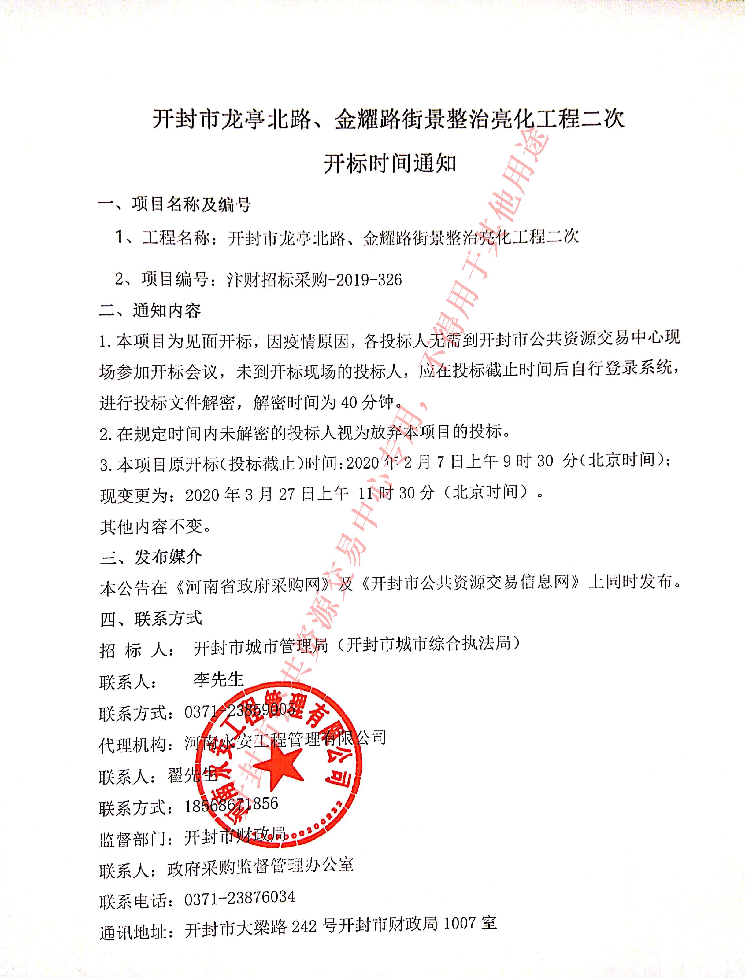 1、工程名称:开封市龙亭北路、金耀路街景整治亮化工程二次