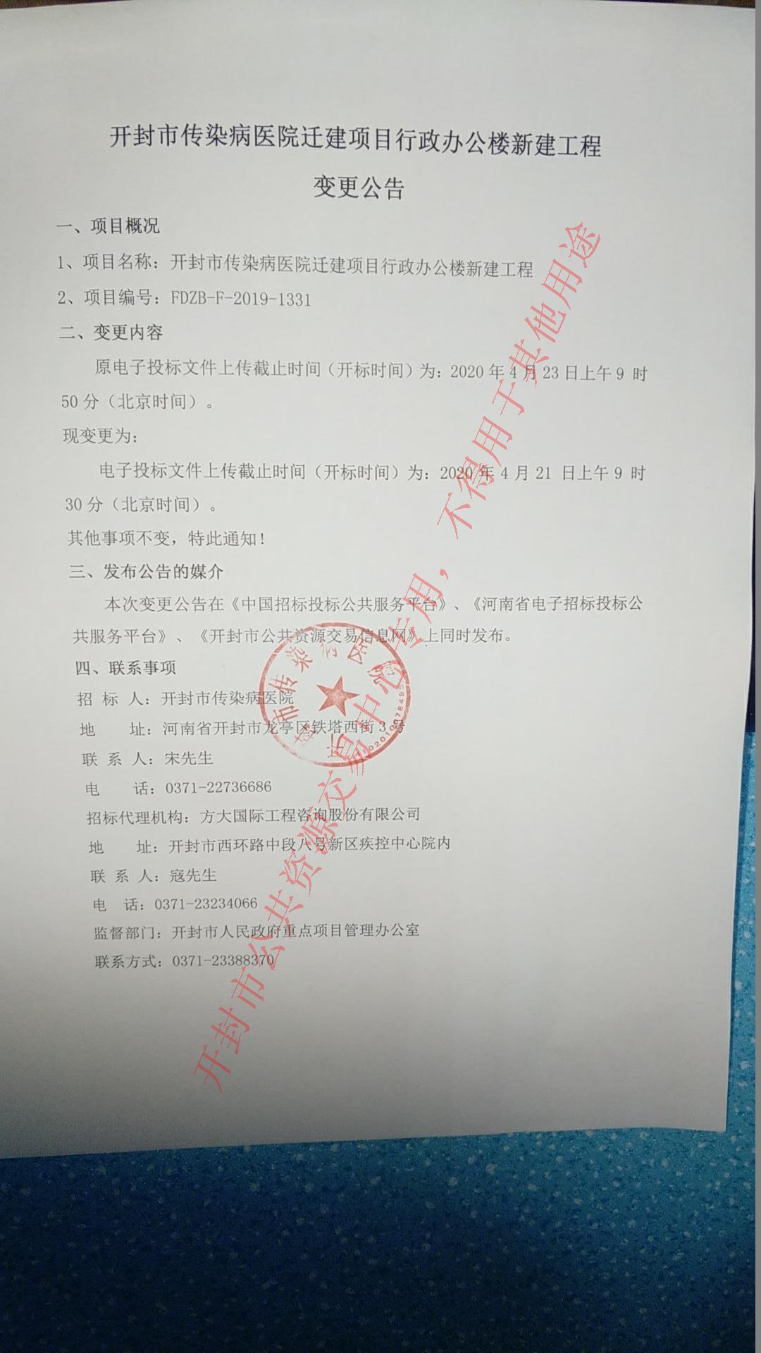 1、项目名称:开封市传染病医院迁建项目行政办公楼新建工程