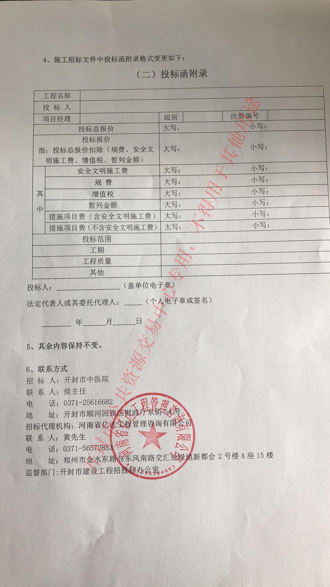 开封市中医院国家中医药传承创新工程项目中医药制剂楼工程施工招标文件及招标控制(总)价变更
