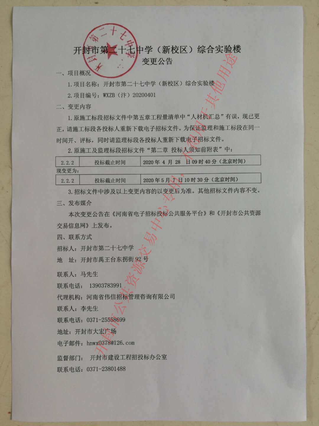 1.项目名称:开封市第二十七中学(新校区)综合实验楼