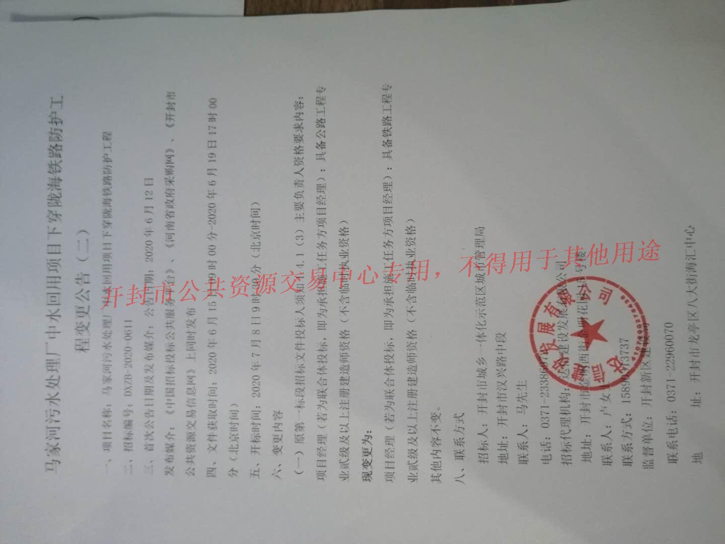 马家河污水处理厂中水回用项目下穿陇海铁路防护工程变更公告(二)