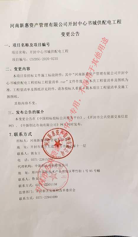 本变更公告在《中国招标投标公共服务平台》、《开封市公共资源交易信息网》、《中新创达咨询有限公司》网上同时发布。