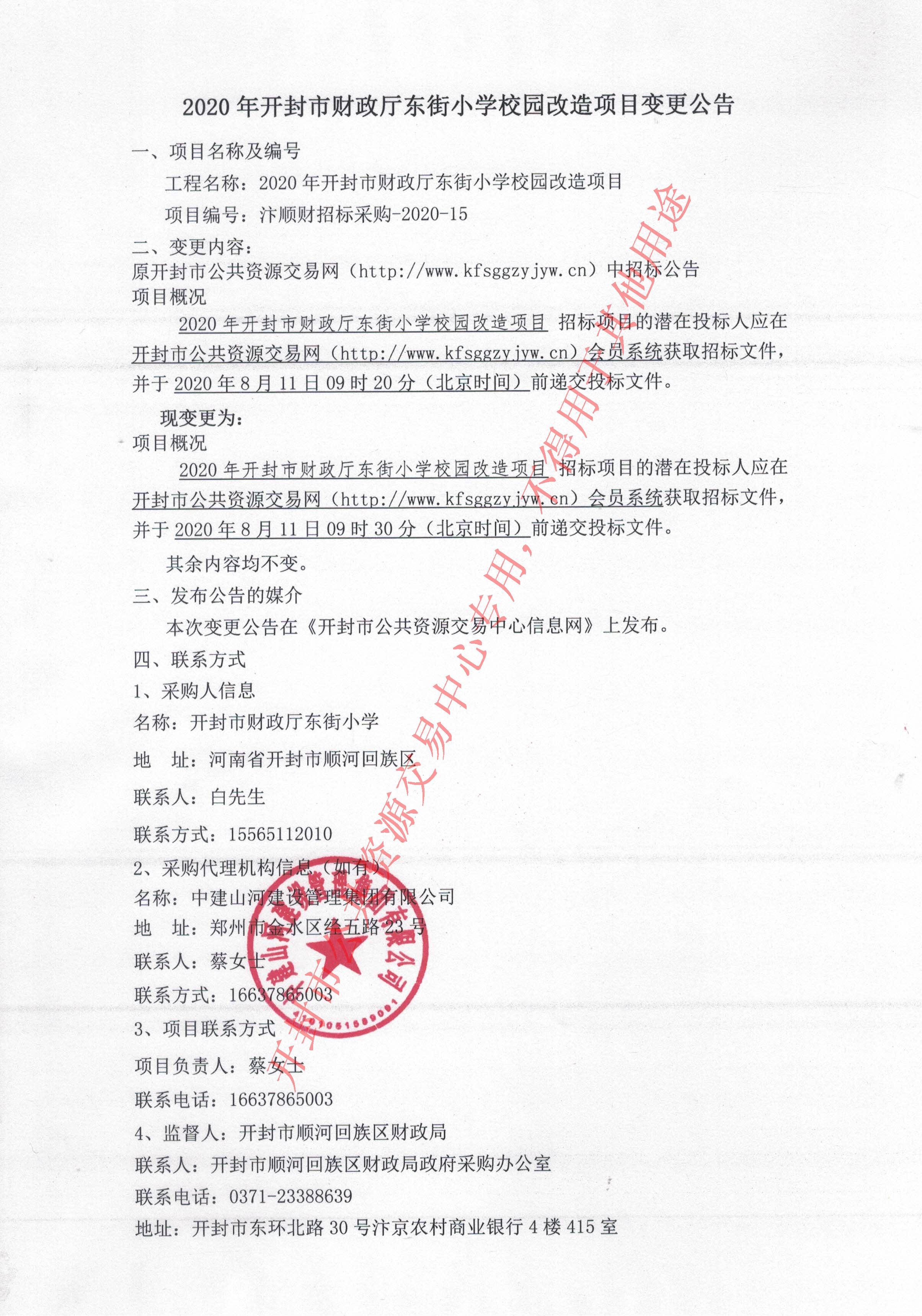 2020年开封市财政厅东街小学校园改造项目变更公告