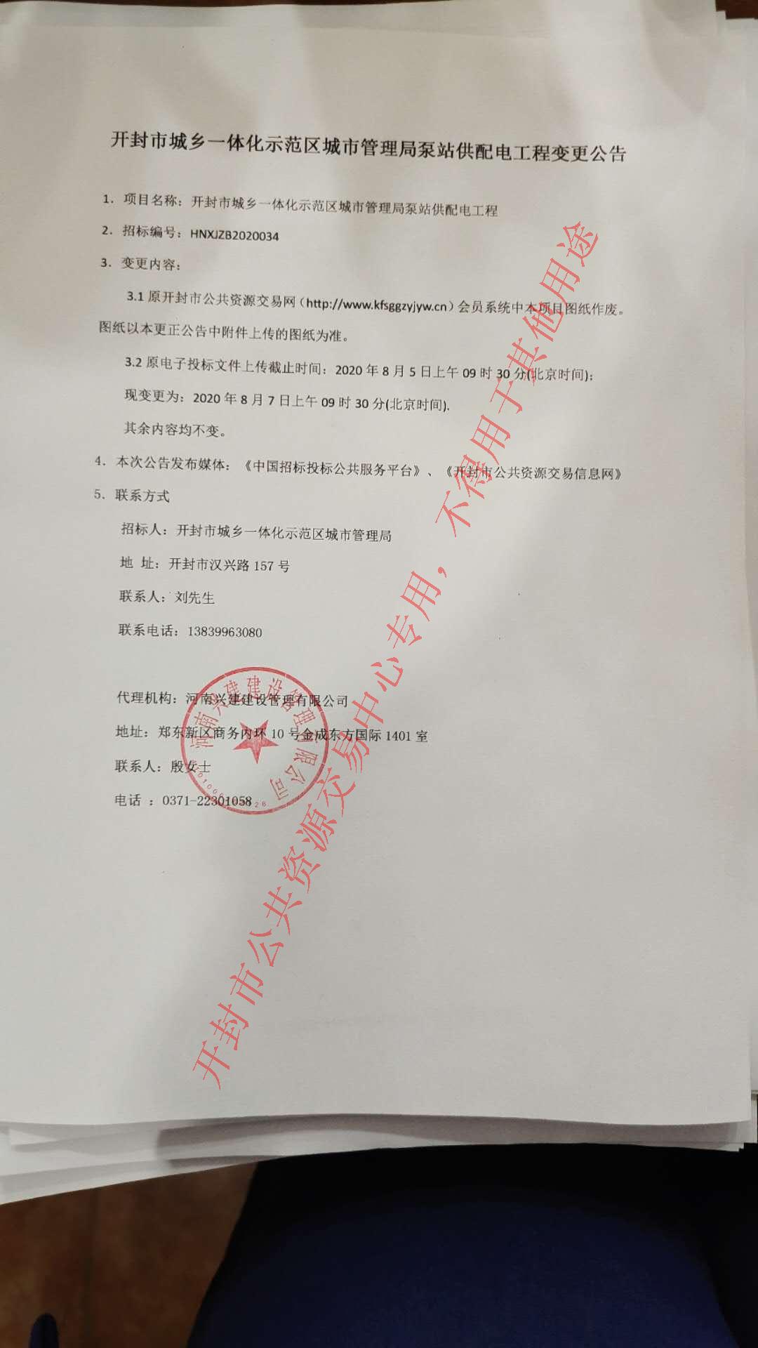 开封市城乡一体化示范区城市管理局泵站供配电工程变更公告