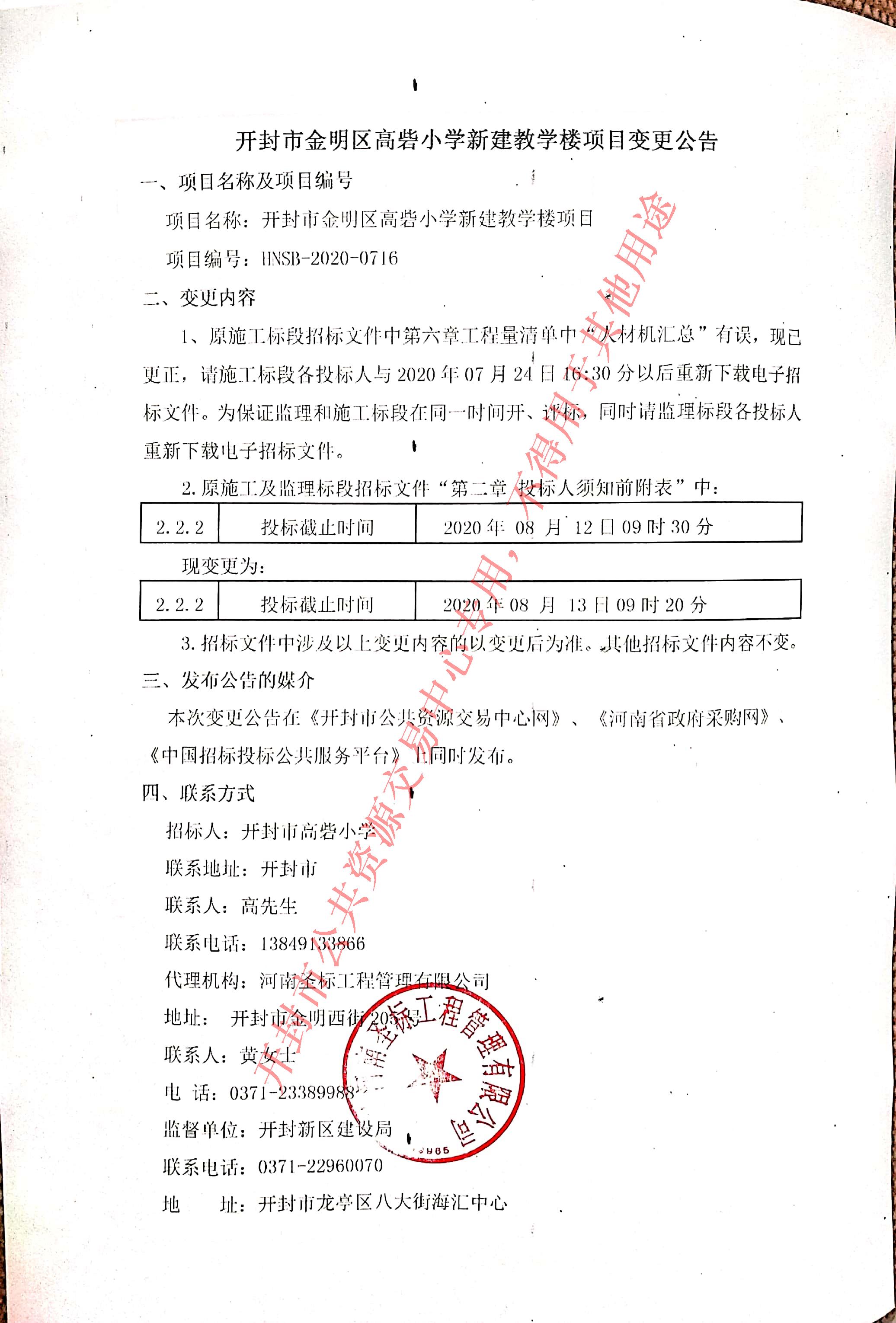 项目名称:开封市金明区高砦小学新建教学楼项目