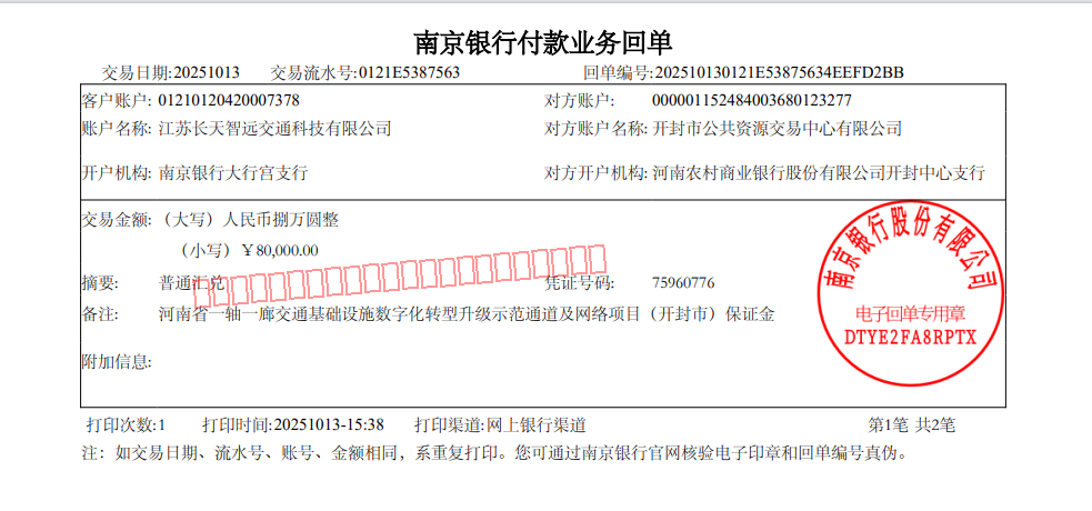 | 甲方名称: | 开封市公路事业发展中心 | 乙方名称: | 江苏长天智远交通科技有限公司 |