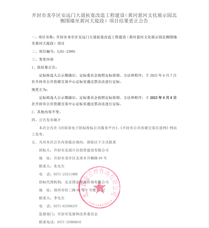 招标人:开封市北部片区投资建设有限公司