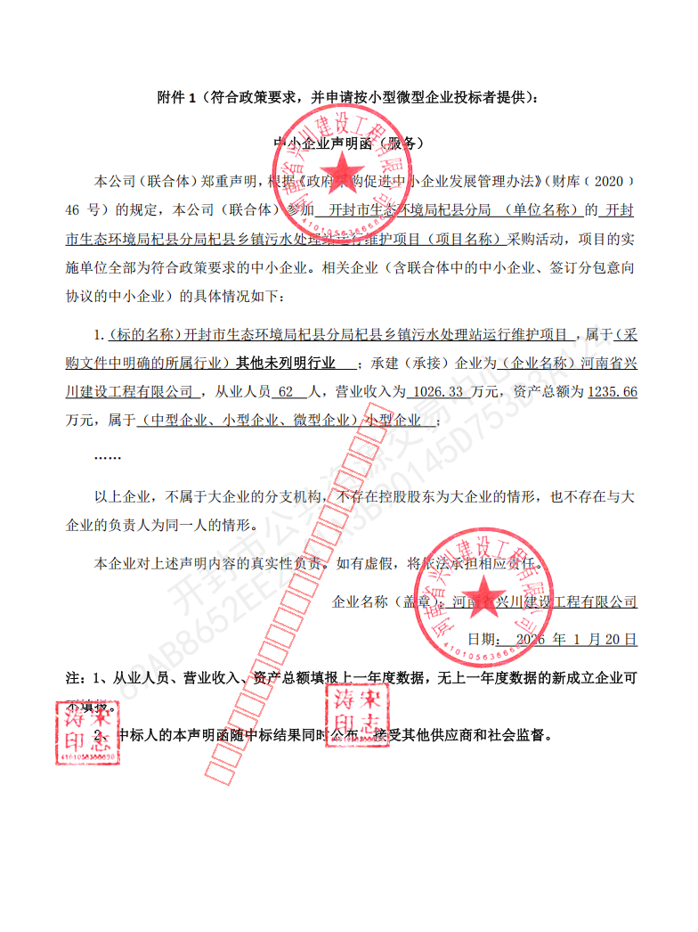 开封市生态环境局杞县分局杞县乡镇污水处理站运行维护项目 |