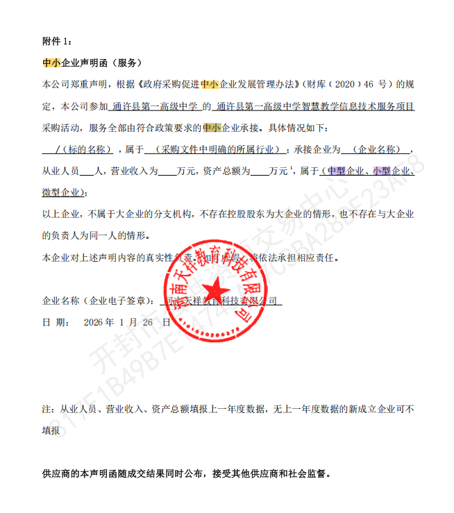 | 1、递交质疑或投诉的方式及地址 (1)线上:根据汴公管办(2020)13号文件规定,投标人需在“开封市公共资源交易信息网”交易系统中提出质疑(异议)与投诉,招标人在规定时间内进行回复,各投标人应时刻关注电子交易系统中的项目进度和状态。递交地址:《开封市公共资源交易信息网》会员投标系统中本项目“质询信息”位置线上直接提起。 (2)线下:1.采购人信息 名称:通许县第一高级中学 地址:通许县裕丰路西段 联系人:彭先生 联系方式: 0371-22207021 2.监督部门:通许县财政局(政府采购办) 地址:通许县上海路与咸平大道交叉路口往东北约110米 联系人:赵先生、田先生 电 话: 0371-22207649 2.未通过名单及原因:河南贤蕴信息科技有限公司:未按照竞争性磋商文件要求提供近半年任意一个月缴纳税收和社会保障资金的证明材料,资格性检查不合格,按无效投标处理。 | |||||||||||||||||||||||||||||||